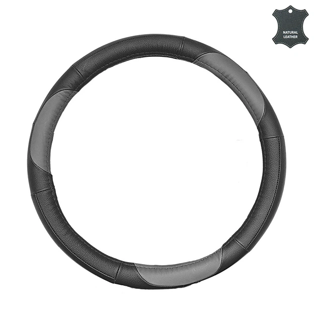 Чохол на кермо М шкіряний чорний з сірими вставками Elegant Plus EL 105661