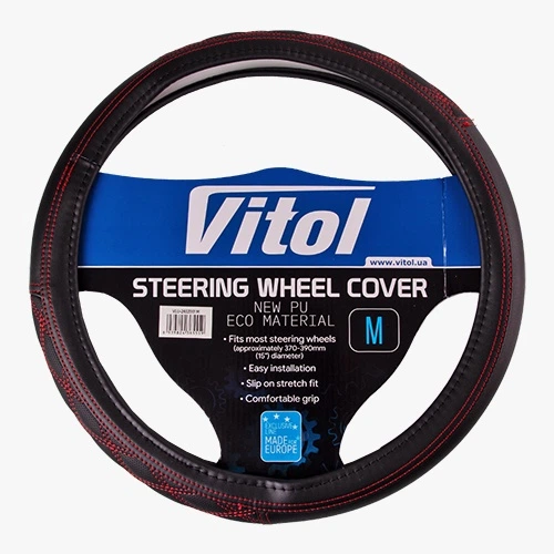 Чохол на кермо М шкіряний, червоно-чорного кольору Elegant Plus EL 105 766