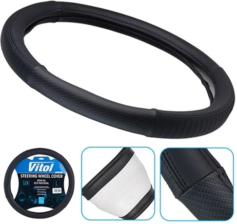 Чохол на кермо CarLife шкіряний L (37-39 см) Чорний (SW241M)