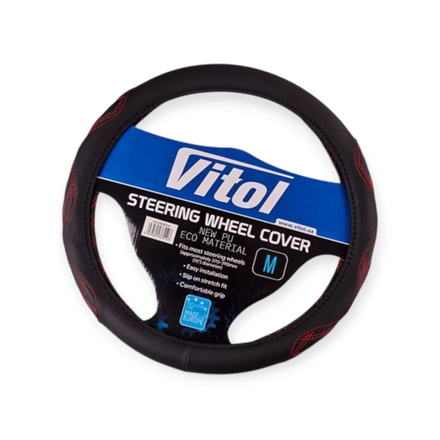 Чохол на кермо VLOD-L2607 BK/RD M чорно-черв./БО/шкіра