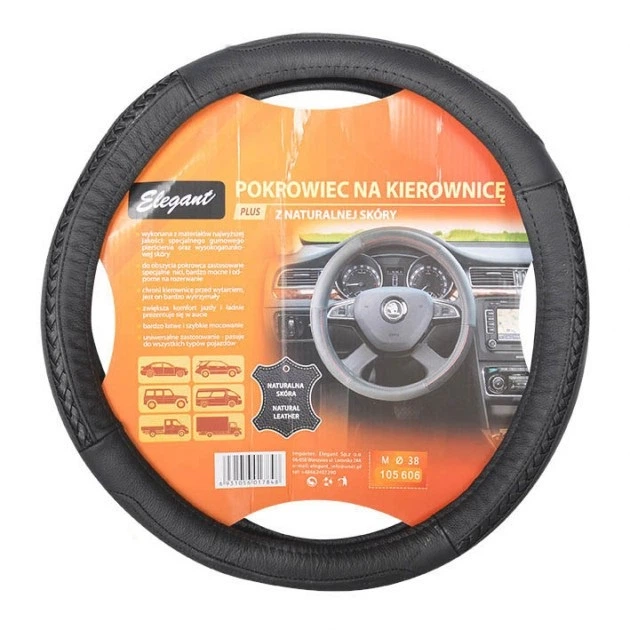 Чохол на кермо шкіра "L" (39-40см) чорний Elegant 105607 масаж + вставка кіска