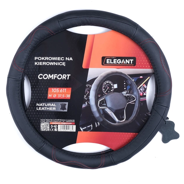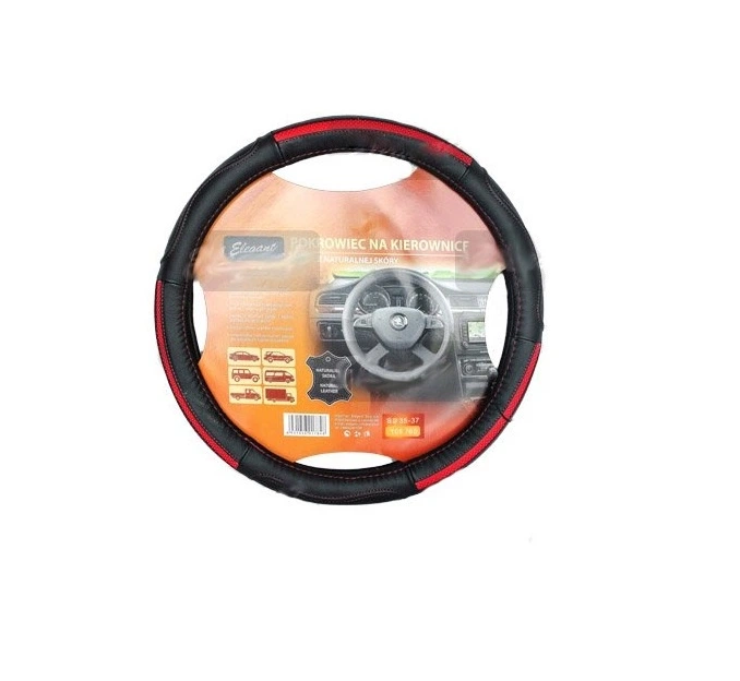 Чохол на кермо шкіра "М" (37-38см) чорний Elegant 105611 масаж, прошитий червоною ниткою
