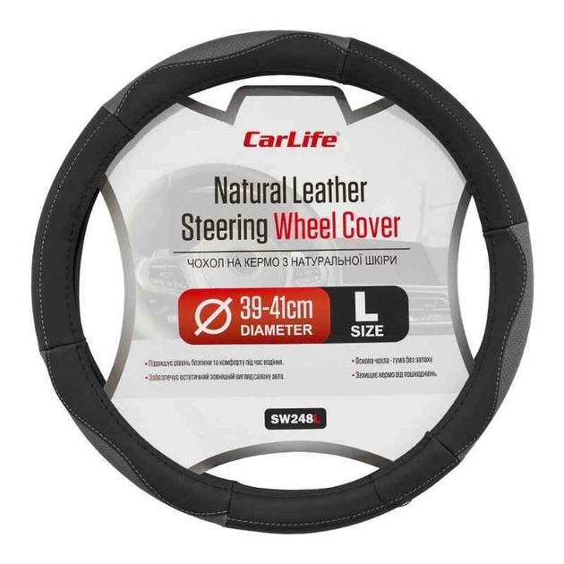 Чохол на руль Carlife 39 - 41см, шкіра, чорний із сірими вставками (SW248L)