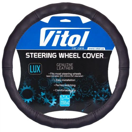 Шкіряний чохол на кермо авто Vitol 39-41 см VLOD-L282 BK/RD L чорно червоний перфорація