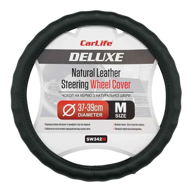Чохол на руль Carlife 37 - 39см, шкіра, чорн., біла основа, один шов (SW342M)