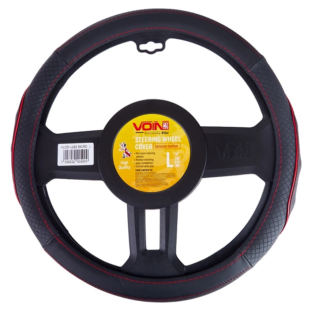 Шкіряний чохол на кермо авто Vitol 39-41 см VLOD-L283 BK/RD L чорно червоний перфорація
