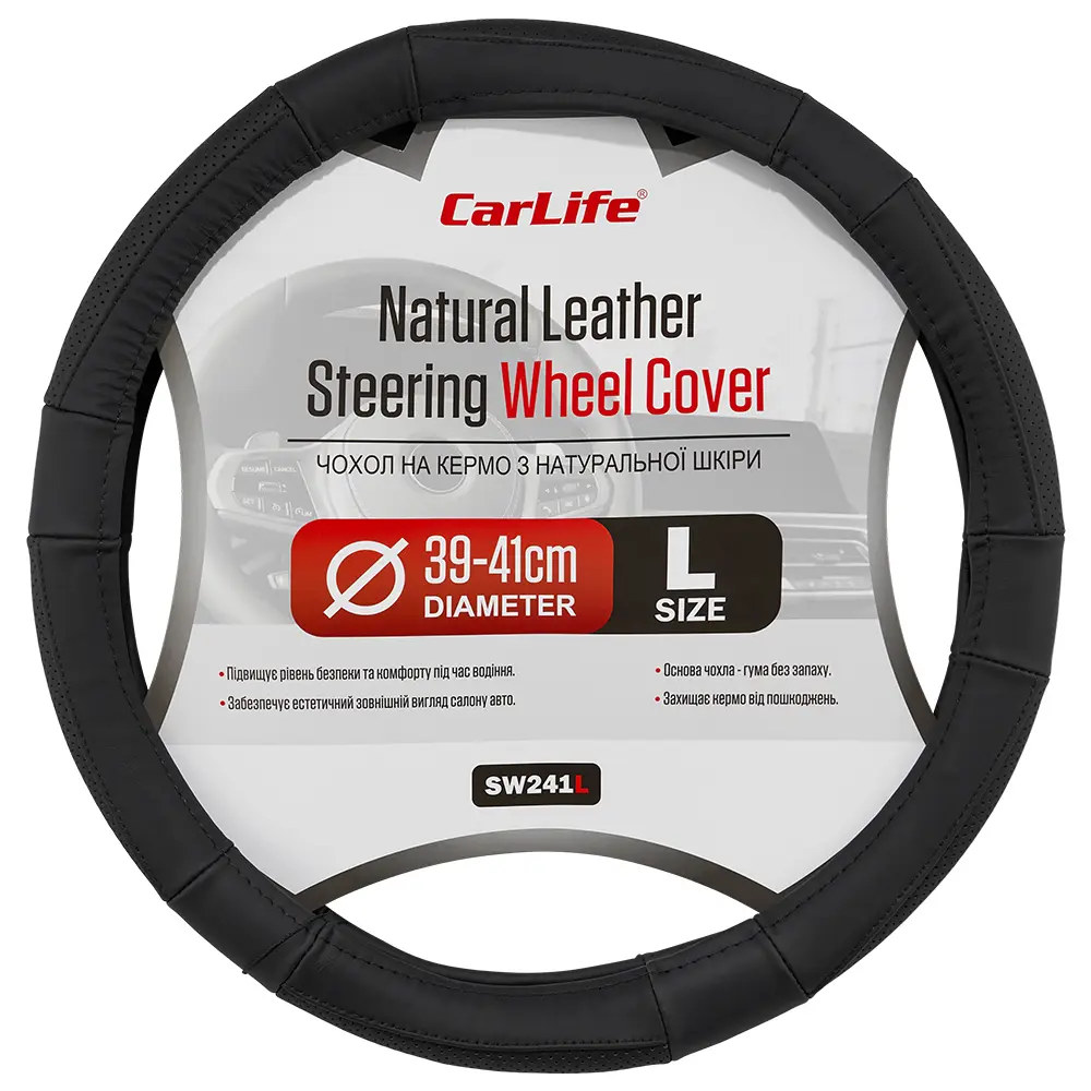 Чохол на кермо Carlife 39 - 41см, шкіра, чорний SW241L