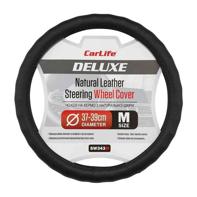 Чохол на кермо Carlife 37-39см шкіряний чорний для автомобіля (LI-D22-O)
