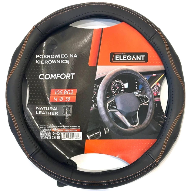 Чохол на кермо М 37-39 см з Масажером Шкіра Чорний Помаранчева нитка (EL 105 802)
