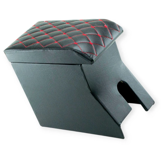 Підлокітник daewoo lanos чорний з червоною вишивкою ромб (шкірозамінник) Автокомфорт