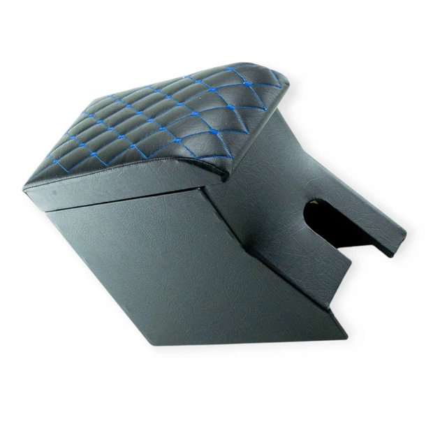 Підлокітник daewoo lanos чорний з синьою вишивкою ромб (шкірозамінник) Автокомфорт