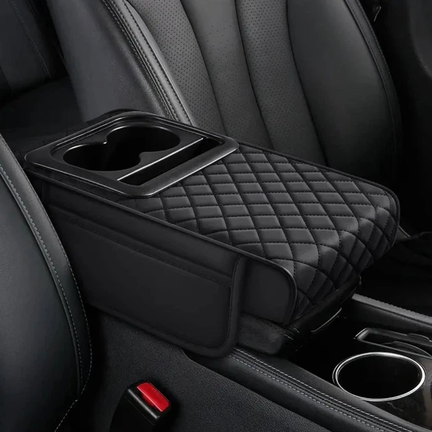 Подушка-органайзер на підлокітник центральної консолі автомобіля з тримачем для напоїв та додатковими кишенями