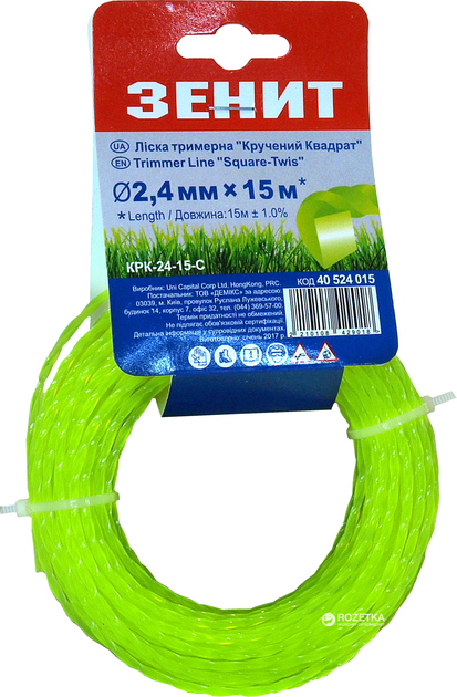 Волосінь для тріммера Зеніт Вітою квадрат 2.4 мм х 15 м (2210108429018)