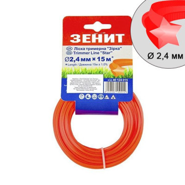 Жилка косильна Зеніт плетена "Зірка" 2,4 мм х 15 м (3В-24-15-ОР) (40124015)