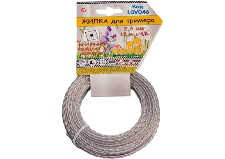 Жилка для тримера Virok Кручений квадрат з кордом діаметр 2.4 мм довжина 15 м (10V046)