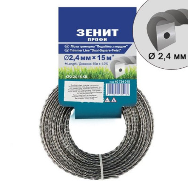 Жилка косильна Зеніт ПРОФІ "Подвійна з кордом" 2,4 мм x 15 м (КР2-24-15-КВ) (40724015)