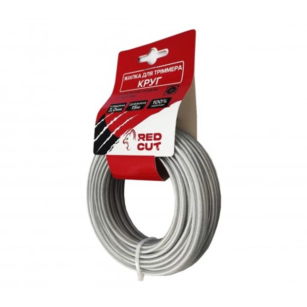 Жилка для тримера Круг зі сталевим кордом, 3,0мм*15м "Red Cut" 35-15548