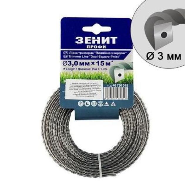 Жилка косильна Зеніт "ПРОФІ" "Подвійна з кордом" 3,0 мм x 15 м (40730015)