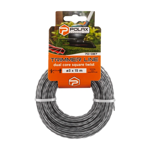 Жилка для тримера "Кручений квадрат з кордом" 3 мм Polax 15 м (70-087)