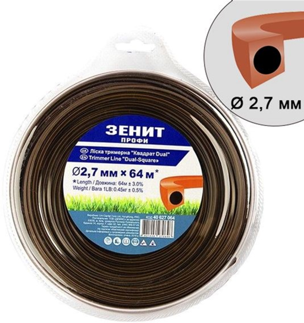Волосінь для тріммера Зеніт Профі Квадрат Dual 2.7 мм х 64 м (4821406270646)