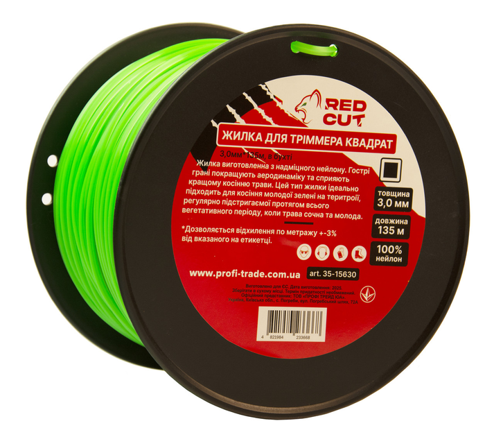 Жилка для тримера Квадрат, 3,0 х 135 м в бухті "Red Cut" 35-15630
