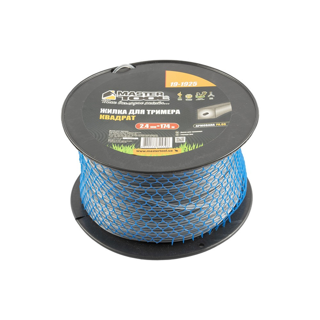 Жилка для тримера MASTERTOOL КВАДРАТ АРМОВАНИЙ 2,40 мм 174 м котушка 19-1925