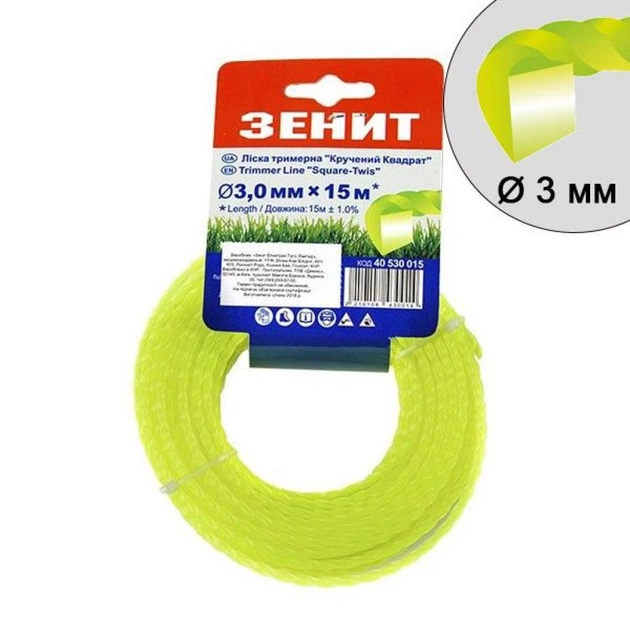 Жилка косильна Зеніт плетена "Кручений квадрат" 3,0 мм х 15 м (КРК-30-15-С) (40530015)