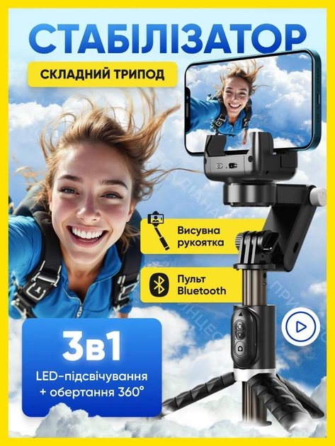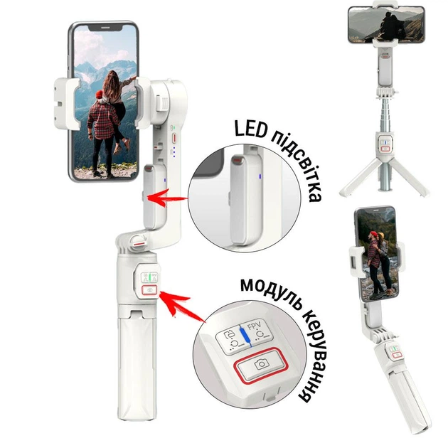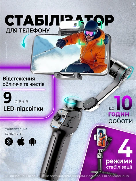 Стабілізатор для телефону стедикам селфі для смартфона стріми трекінг обличчя 3 осі жестове керування Bluetooth трипод LED п