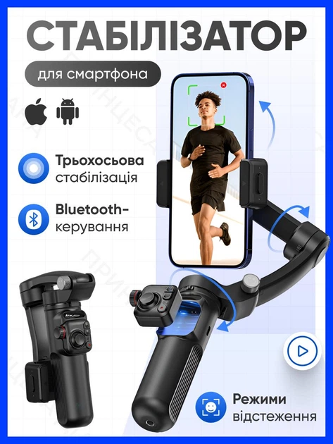 Стабілізатор для телефону розумний трьохосьовий Bluetooth штатив для відео портативний стедікам для телефону з кількома режи
