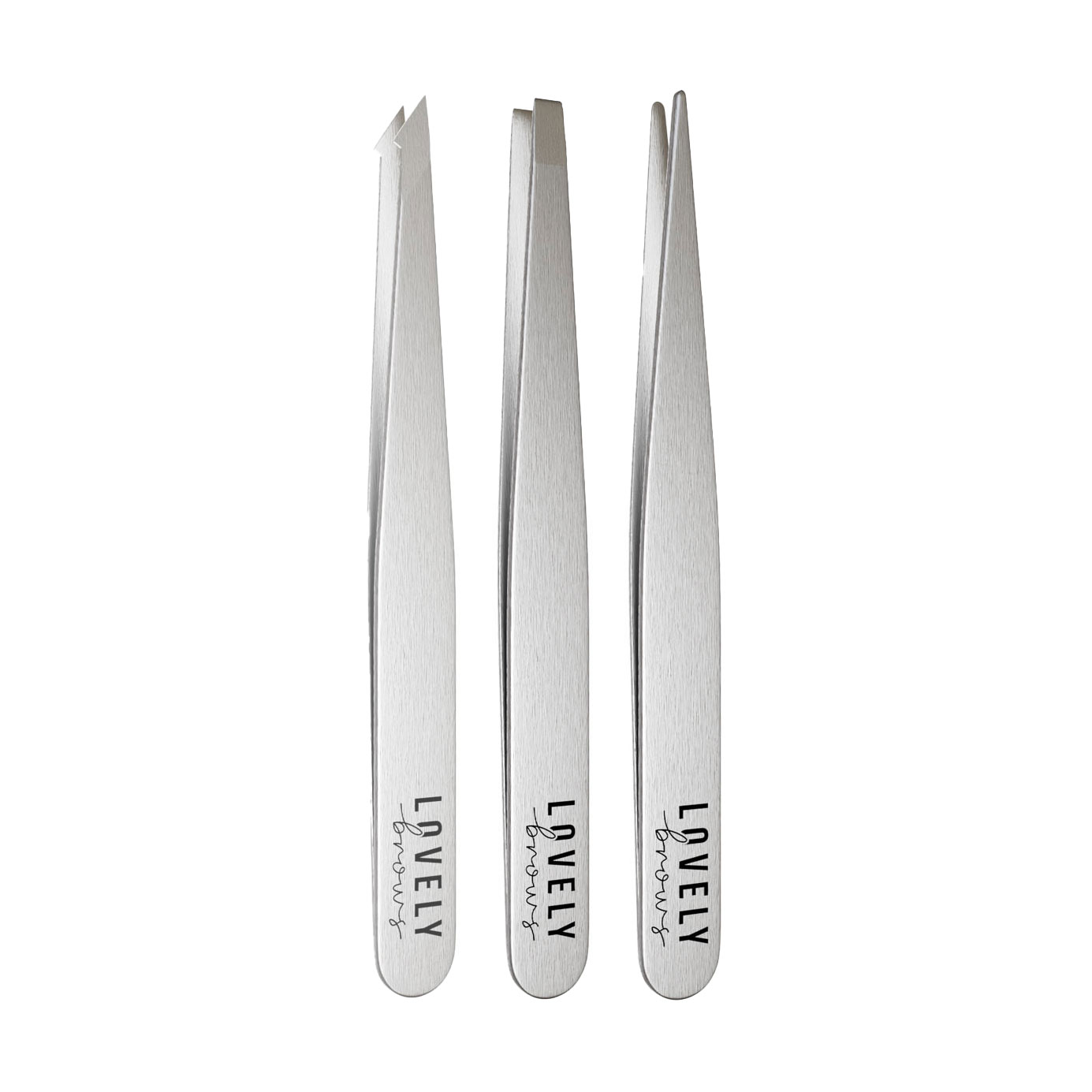 Набір пінцетів для брів Lovely Brows (прямий, 1 шт + скосий, 1 шт + точковий, 1 шт) (LB-n/3)