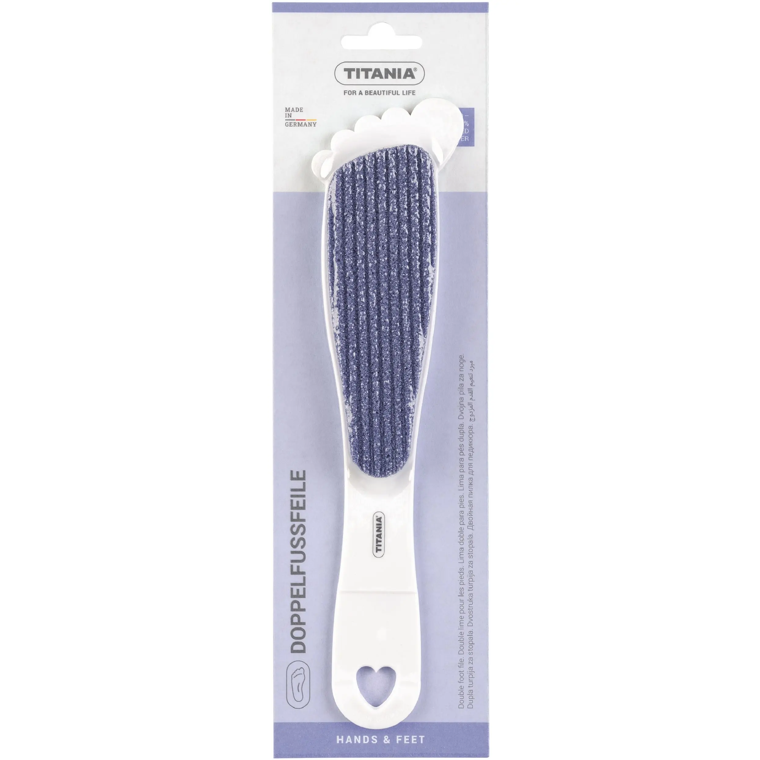 Терка педикюрная Titania двостороння з прогумованою ручкою 15 см блідо-синя (3020ST синій)