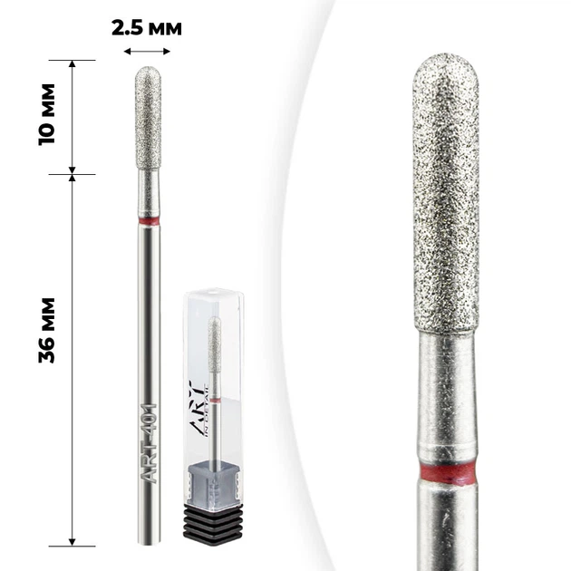 Фреза алмазна ART циліндр закруглений червоний 401 діаметр 2,5 мм