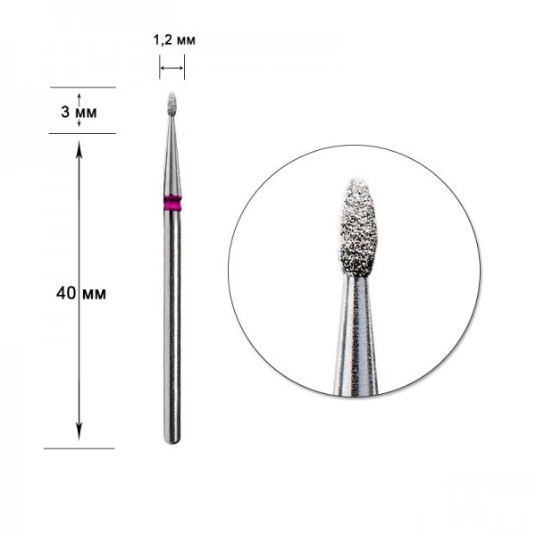 Фреза алмазна staleks pro почка гостра червона діаметр 2,5 мм / робоча частина 4,5 мм