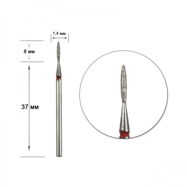 Фреза алмазна STALEKS Полум’я 2.1*8мм, червона