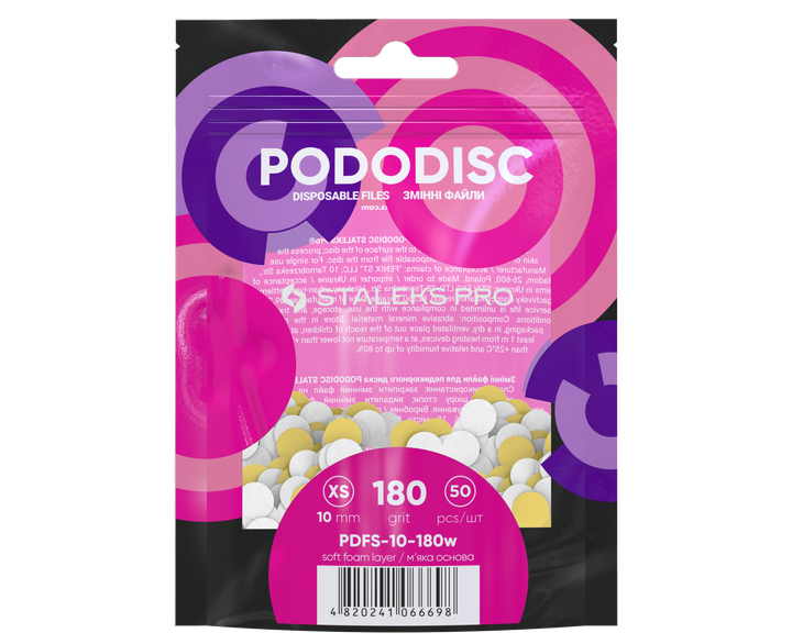 Змінні файли для педикюрного диска Staleks PRO Pododisc XS d=10 мм 180 грит на м'якій основі 50 шт колір білий (482024106669