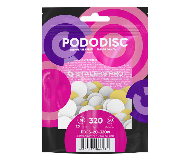Змінні файли білі STALEKS PRO PODODISC M на м'якій основі для педикюрного диска 320 грит (50 шт) - PDFS-20-320w