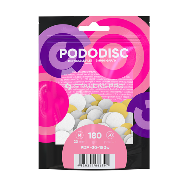 Змінні файли на м'якій основі для педикюрного диску Staleks PRO Pododisc М 20 мм 180 гріт білі набір 50 шт