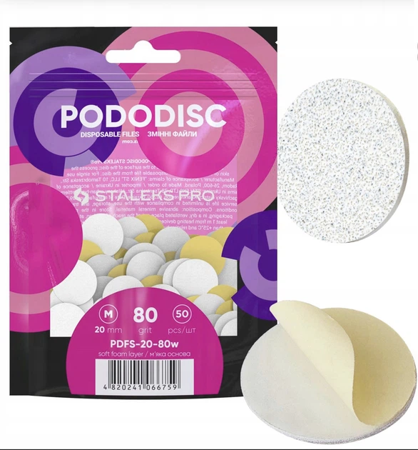 Змінні файли білі для педикюрного диска на м'якій основі 80 грит PRO PODODISC M PDFS-20-80w STALEKS 50 шт