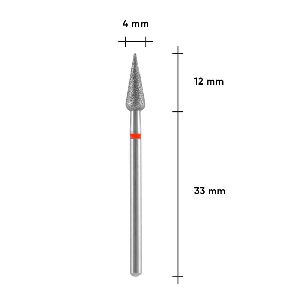 Фреза діамантова груша гостра червона EXPERT діаметр 4 мм / робоча частина 12 мм