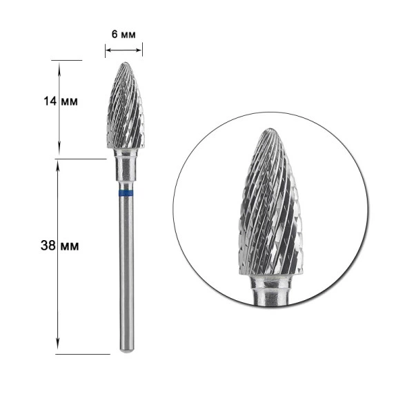 Фреза твердосплавна STALEKS PRO усічений конус синя діаметр 6 мм / робоча частина 14 мм - FT70B060/14