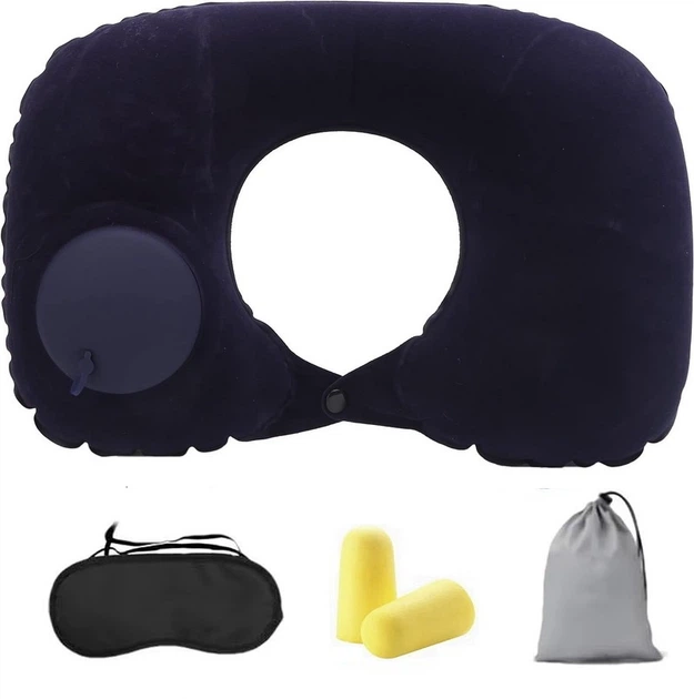 Подушка надувна дорожня з Насосом Silenta Navy Blue + маска + беруші + чохол (4 в 1) (12760)