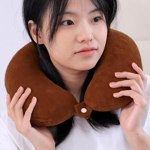 Подушка для подорожей ортопедична Monochrome 30x25см (Подушка під шию в дорогу) Коричневий