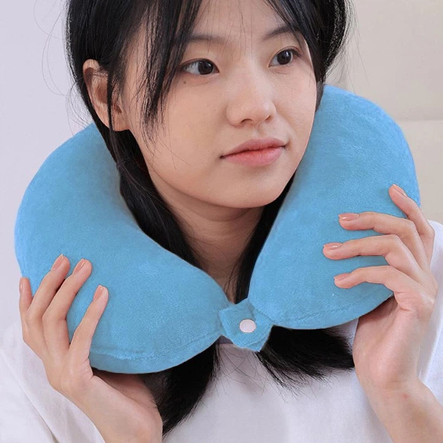 Подушка для подорожей ортопедична Monochrome 30x25см (Подушка під шию в дорогу) Блакитний