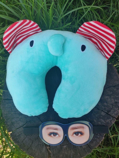 Комплект дорожня подушка Слон + маска для очей 31х31х8 см Блакитний 064