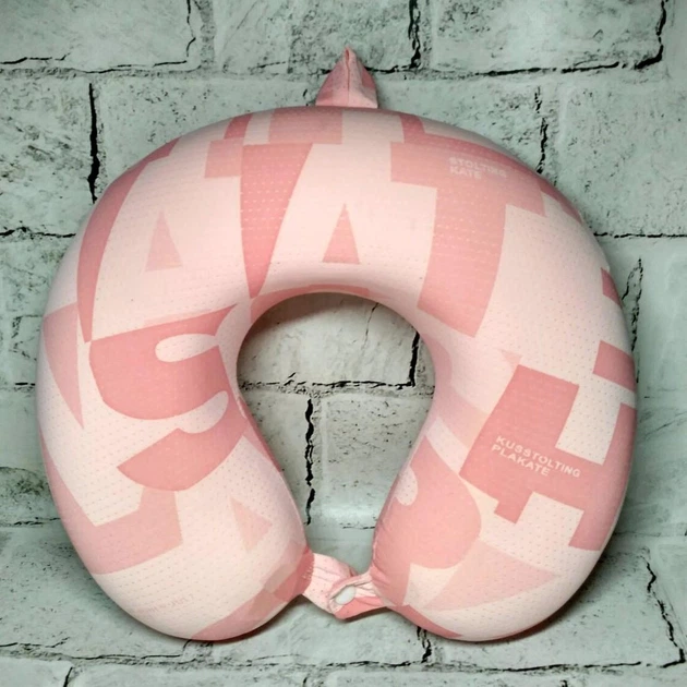 Подушка для подорожей під шию з пам'яттю Літери 29х26х8 см Рожева 25-2-391