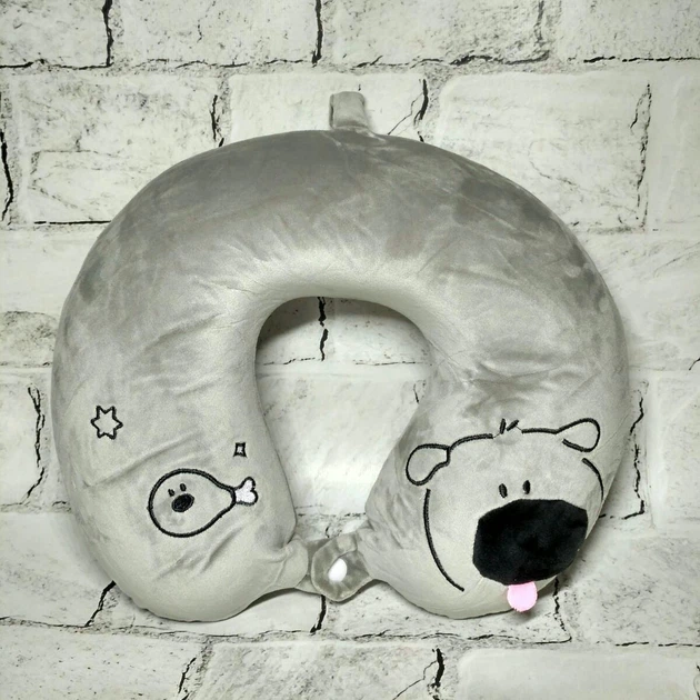 Подушка для подорожей під шию з пам'яттю Собачка 29х26х8 см Сіра 25-9-91