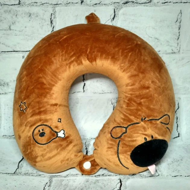 Подушка для подорожей під шию з пам'яттю Собачка 29х26х8 см Коричнева 25-9-93