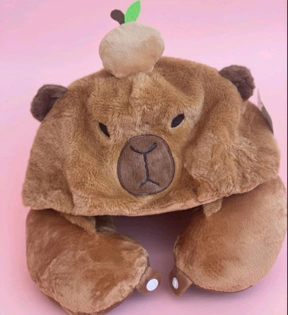 Подушка для подорожей Капібара з капюшоном 32х25х10 см коричневий