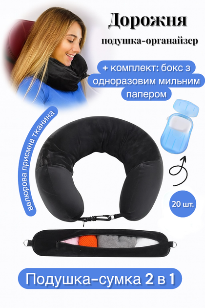 Дорожня подушка органайзер для шиї у дорогу для літака автобуса потяга ручна поклажа подушки для подорожей під голову 2 в 1