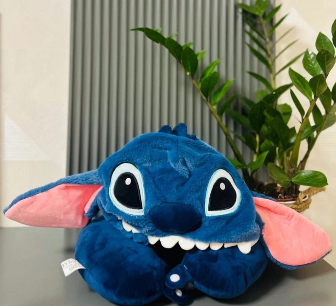 Подушка для подорожей Стіч з капюшоном 32х25х10 см синій